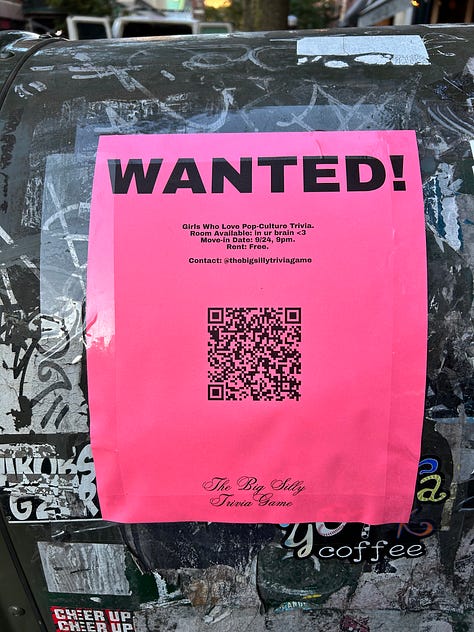 Last week, we sprinkled 200 neon pink posters around downtown New York City. Specifically, the paths I know that our players take. One player I envisioned comes across a flyer post-WSH walk, then into the West Village for a coffee, followed by a stroll down Hudson to their office.